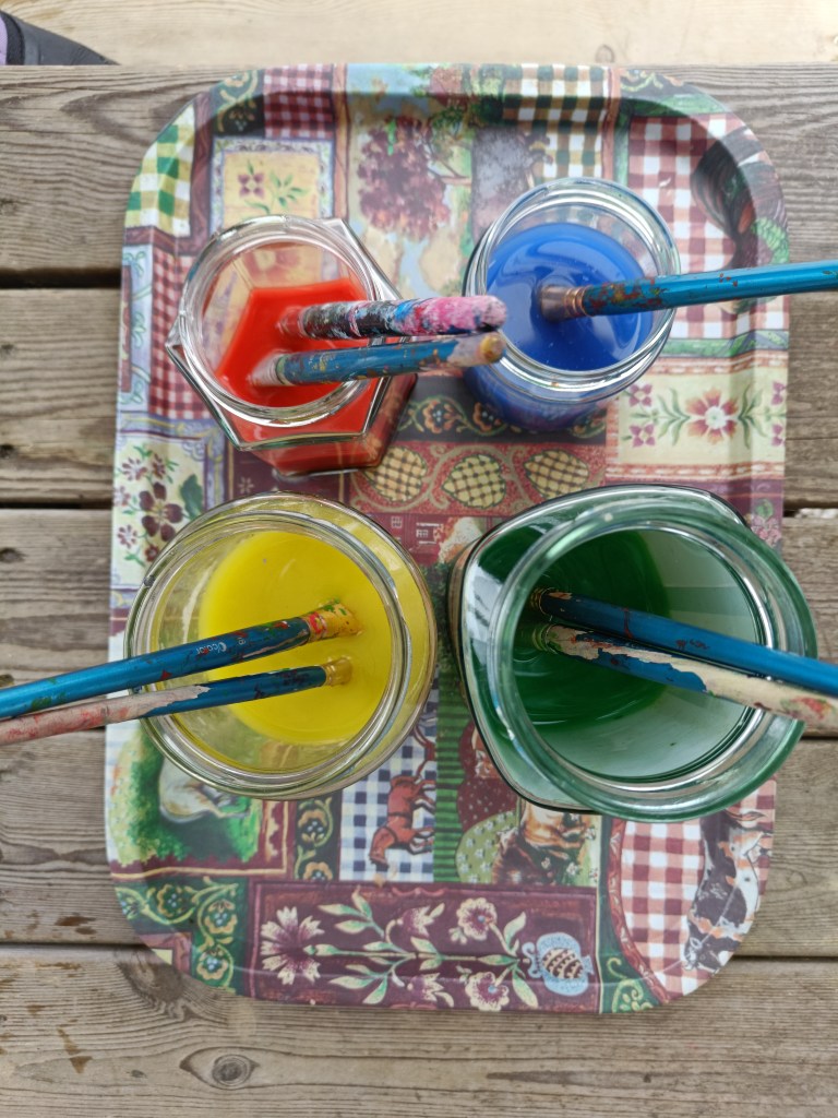 Når vi maler ute er det lurt å bruke vannbasert maling, da denne malingen vaskes enklere bort fra klærne. Eller så kan det også være greit å ta en regnbukse utpå dressen, den er enkel å skylle av når vi er ferdige.
