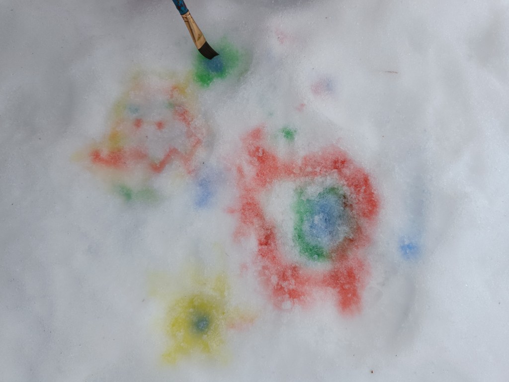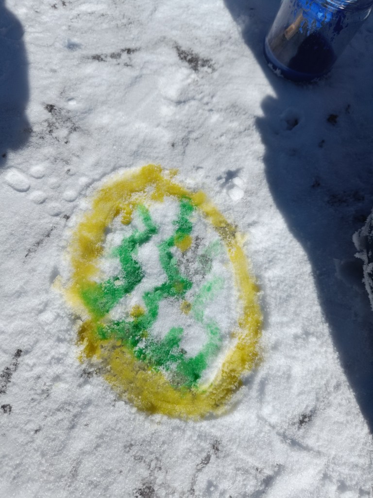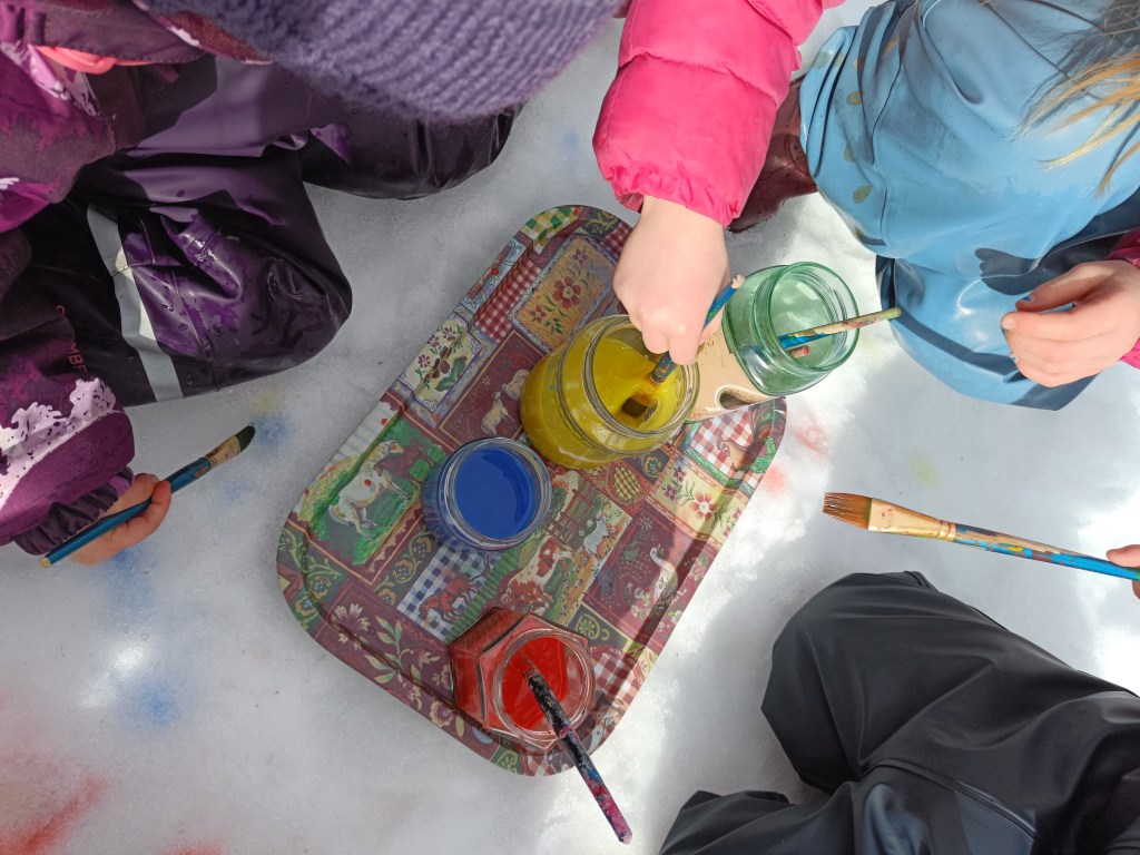 Vi er glade i å male ute, og når vi maler i snøen har vi nesten ubegrenset med plass å male på.