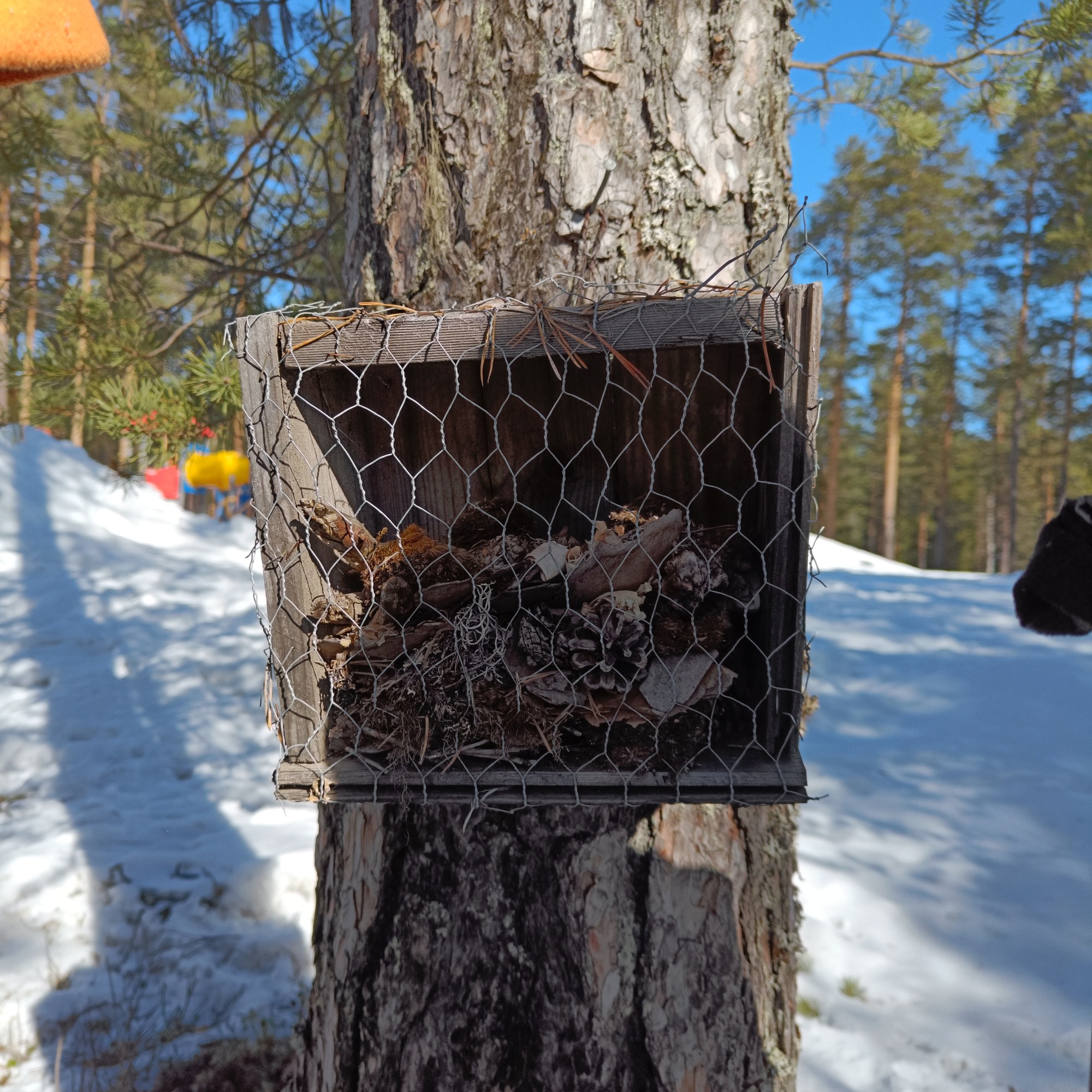 Fyll de ulike boligene i kassen med bambusrør, trestykker med hull i, halm, gress, løv, mose og kongler.